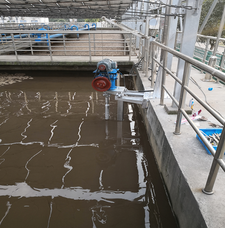 其二,高效推流破淤积。采用后掠式优化叶轮,配合可调节悬挂角度设计,推流覆盖范围较传统设备提升 50%,能形成均匀环流,彻底解决池底污泥淤积问题,氧化沟溶解氧分布偏差缩小至 0.3mg/L 以内。